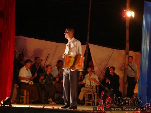 依稀记得小的时候每逢过圩日都有壮剧表演,晚上早早就拿着凳子去占位置拉长脖子等着看了,呵呵,尽管那时候还不是很听得懂唱的是什么,但都会跟着哼“呀……哈……嗨!”可后来就再也没有这样的表演了。如今可以看到表演了,还真不敢相信呢。回家了才知道,今年县里号召各个乡村恢复壮剧表演,还要进行比赛。我们村的壮剧基础本来就很好,况且原来的壮剧班子还有两位老人家健在,剧本也很好的保存了下来,如不传承下来就真的失传了,多可惜啊!所以村长很上心,为了重新组建壮剧班子,找演员,找乐手,拉项目,忙前跑后的累倒进了医院,最后总算是组成了一个民间壮剧团,每晚的排练都很晚,大家也都非常认真,当晚的演出非常的成功,得到了观众的好评和肯定。