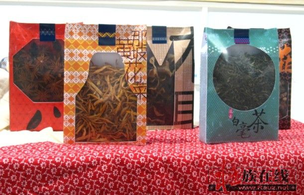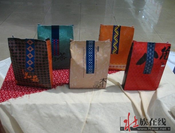 产品:百色八角       包装底纹和封口条采用壮族围裙花边刺绣的花纹(连叶文),形状类似八角。凌云白毫茶大蟒花壮锦的八边形的蟒纹构成。