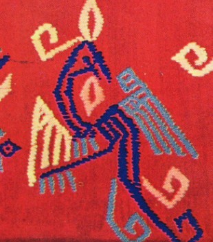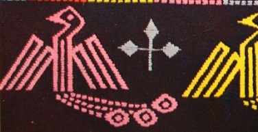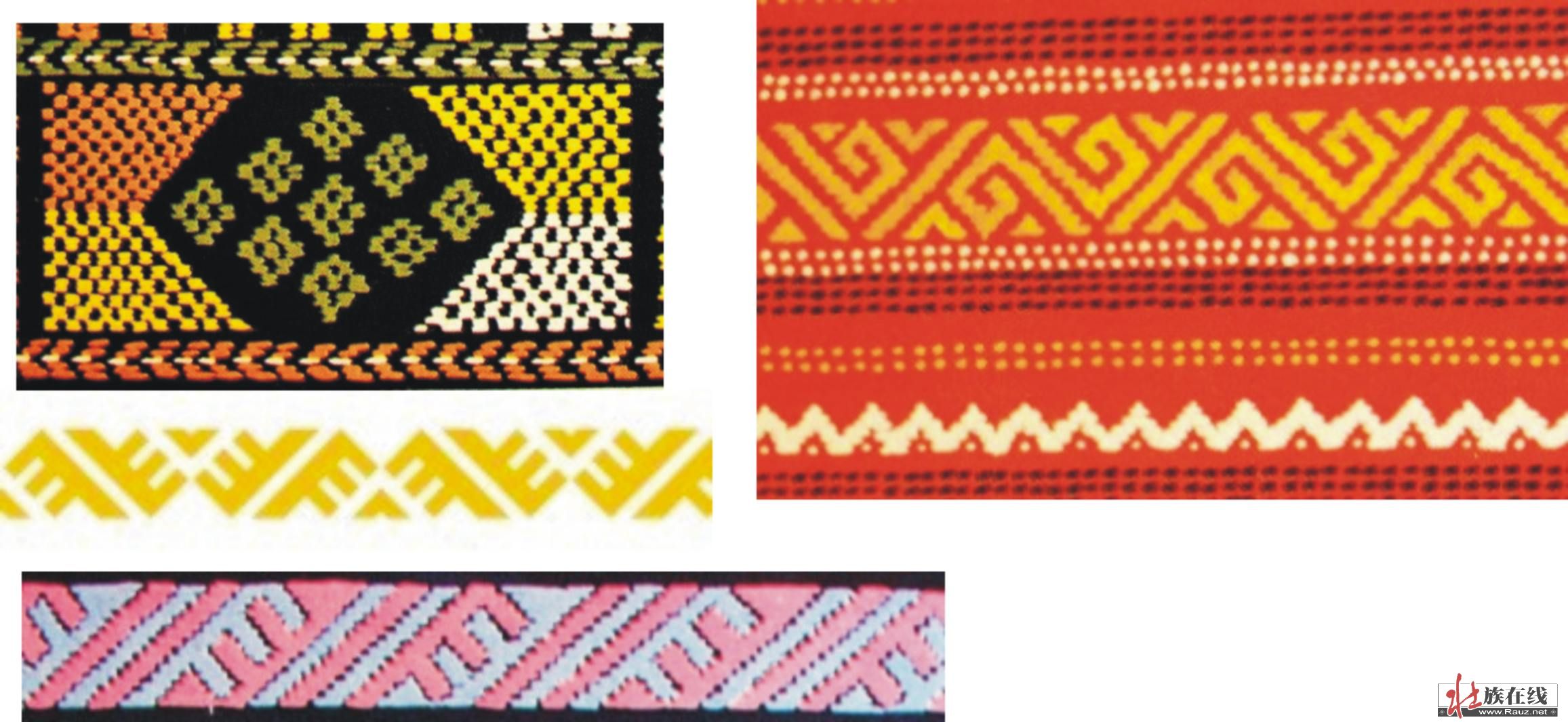 壮族织锦被面花边图案 凤鸟纹和神杆纹