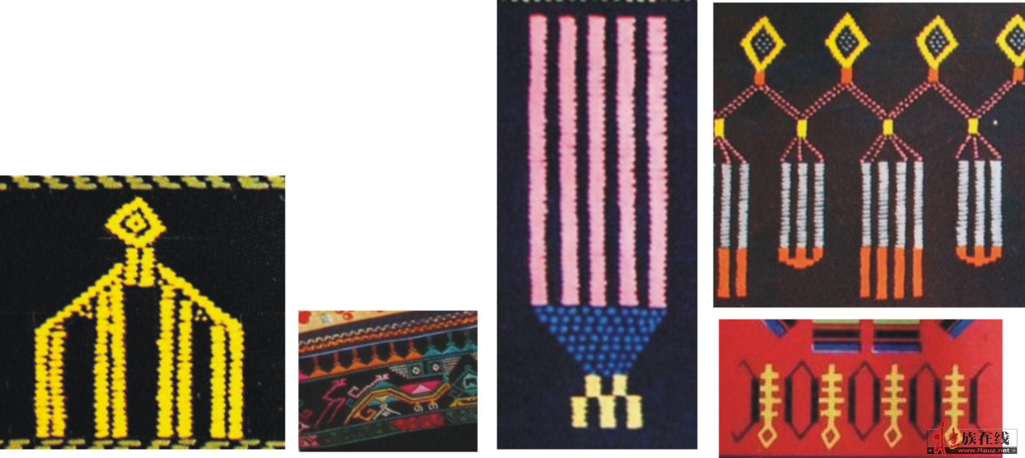 7、神杆纹(根据瑶族类似的神杆纹的推测,没找到书籍说明这个纹样寓意)