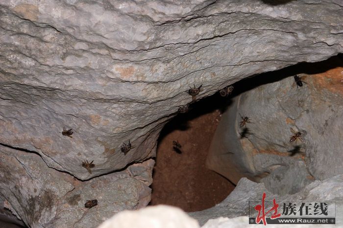 蜜蜂从此处进去,顺缝转弯而入。缝两边各是一块岩石,蜂洞很隐蔽,根本看不到,只能断定其中一块岩石有洞。