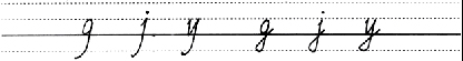 6. 占二格、三格的小写字母有 g, q, y  3个,它们的笔画的顶端要紧贴第二线,下端要紧贴第四线,不可离线也不可出格。