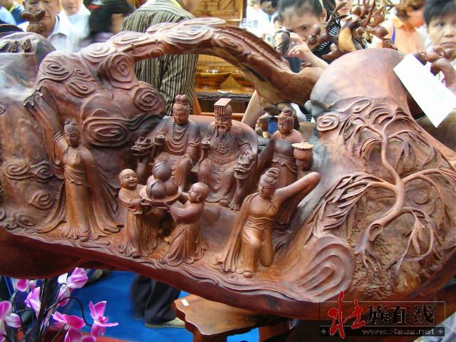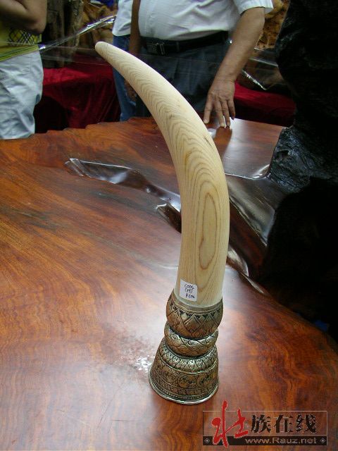 寮国(老挝)展厅内的一个木制象牙装饰品,一对要500元人民币