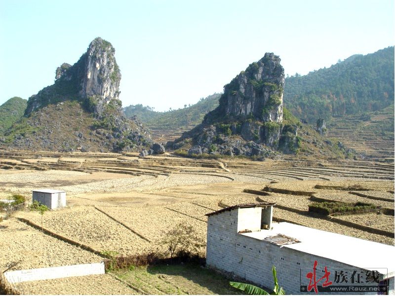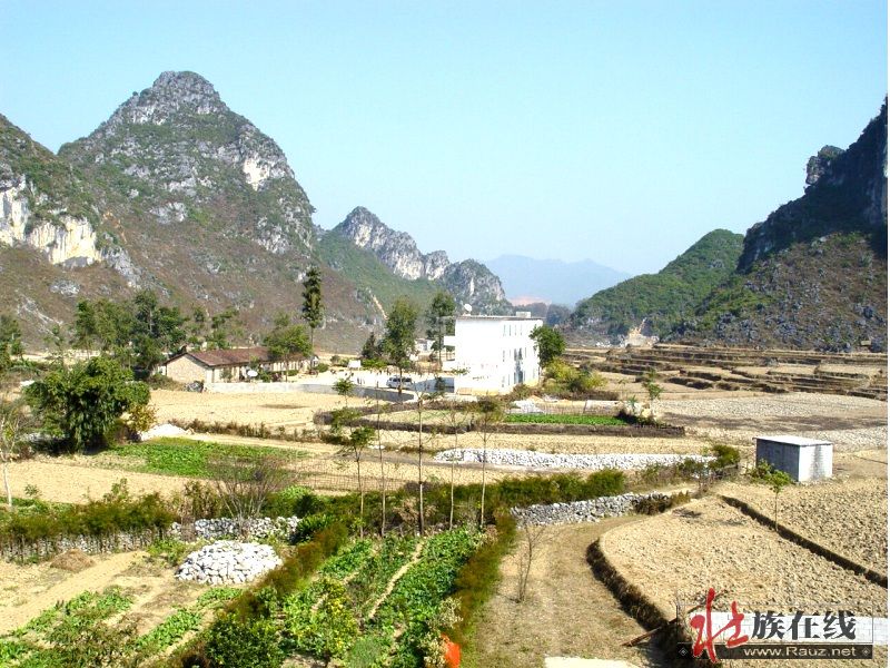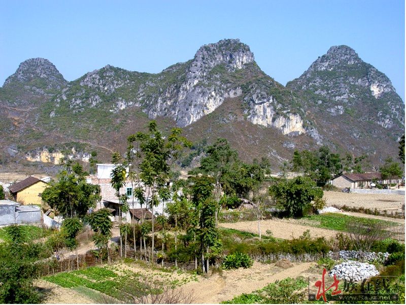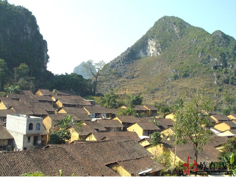 这是我们常见的壮家村落,尤其在桂北及桂西北。典型的喀斯特地形。
