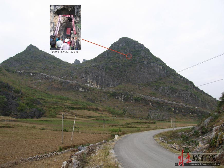 上图16:上林县塘红乡仙岩山“天地庙”所在示意图,小道崎岖登山艰难。众所周知,崇拜岩洞里的神,是比后来人工建庙更加原始的宗教信仰行为。