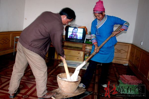 年关来临,在城里工作的贝侬也有家乡人过年的味!!冲个糯米粑粑送亲戚朋友.冲粑粑用的工具都是从老家带来的,据说在城里工作的贝侬有好些都有这个家伙!逢年过节,他们都过着家乡人一样的节日!!