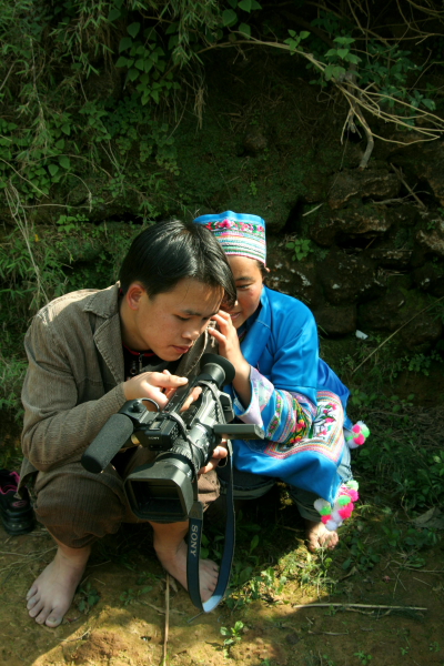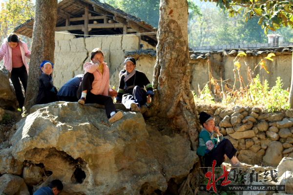 好不要容易看见两个小丫!!把我长焦一拉,哦!!原来在换衣服,将衣服换成壮族服饰!要干什么..............