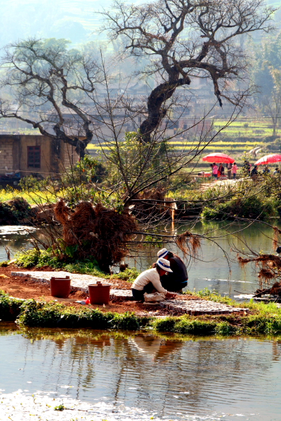 初二 三 四是家乡人拜年的日子,老的小的拜年,年青就到其他村找小丫(小姑娘).槽中人来人往,热闹非凡!!河边成双结对,诉说情怀!!正月里的第一个属亥过祭水田节!此日,家家户户拿拿这板锄,点着香,拿着鞭炮到田里祭田,到田里时将香插入田头,挖两下填田的出水口.祭田过后就可以干活了!!今年祭水田节是初六.