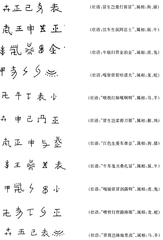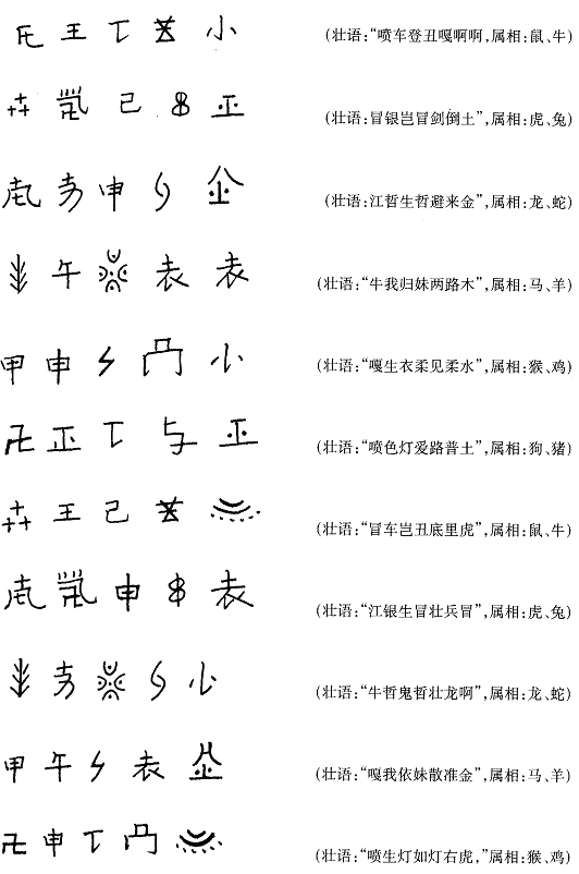 经看过贝侬提供的网址所在网站内容感觉,该丽江政府网所提的壮族应该均指丽江地区辖内的壮族,所以“波摩”占卜用的经书文字即上面所提方块壮族文字应该是丽江壮族所用.