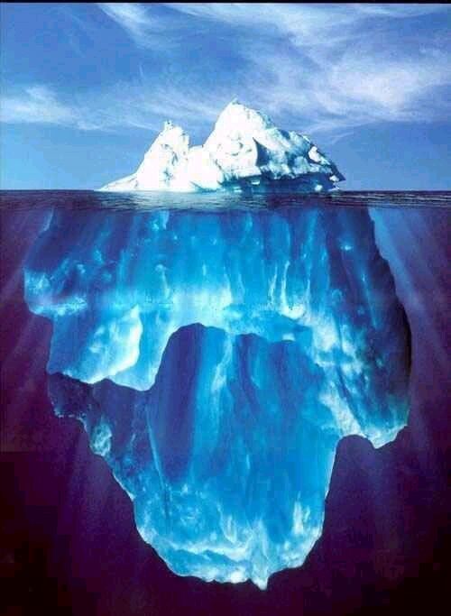 由於當天的海況出奇的風平浪靜,海水清澈無比,陽光又正好是直接照射的角度,所以鑽油平台上的潛水人員才得以拍攝下這幅冰山全貌的完美傑作!!