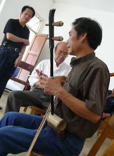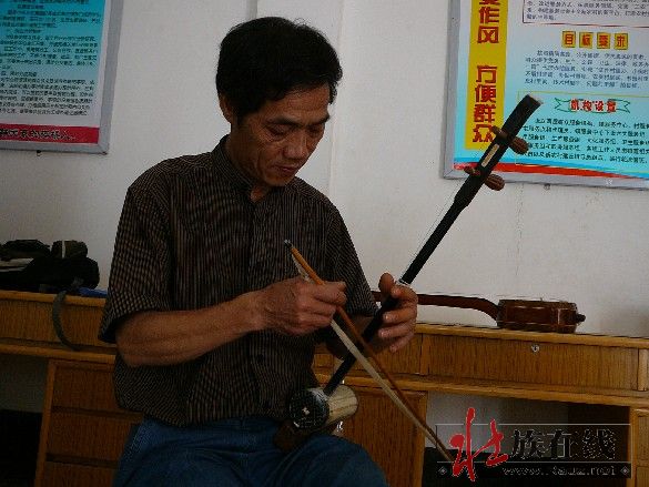 这是第二次到那甲乡了,那甲,壮语原意为茶田,在土司时代,该乡主要为土司供茶,因而得名。那甲人杰地灵,是南部壮剧重要的发源和发展地,叔扩即出生于此。五十岁左右的他现在可谓广西首屈一指的马骨胡制作和演奏家。午饭前叔扩带我们去那甲文昌庙烧香,有意思的是这里的文昌庙分有公庙与母庙,正合潘其旭老师说所提的“壮族公母观”。文昌庙里的神像全部出自叔扩父亲之手,虽是水泥制品,经过彩塑后的神像相当生动,面部表情栩栩如生,连皱纹都细刻出来了。龙生龙凤生凤,叔扩的父亲多才多艺,叔扩一样学什么会什么,他受过良好的音乐教育,长期从事文艺工作。除此之外他还是木工、汽车修理工、电器修理工。国内不少歌舞团和他定制马骨胡,叔扩全名黄广扩,是壮族马骨胡艺术名符其实的代表性传承人。能在德保结识我们壮族的艺术家真是幸运。