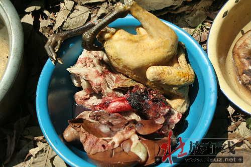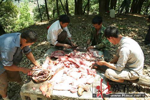族人代表们负责杀猪,分肉等所有有关祭山的任务