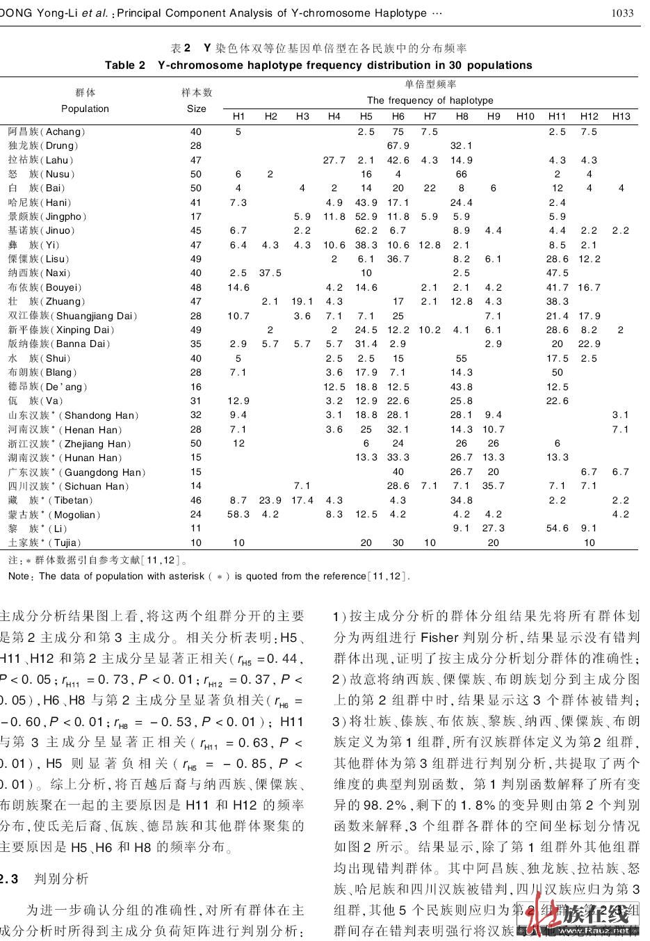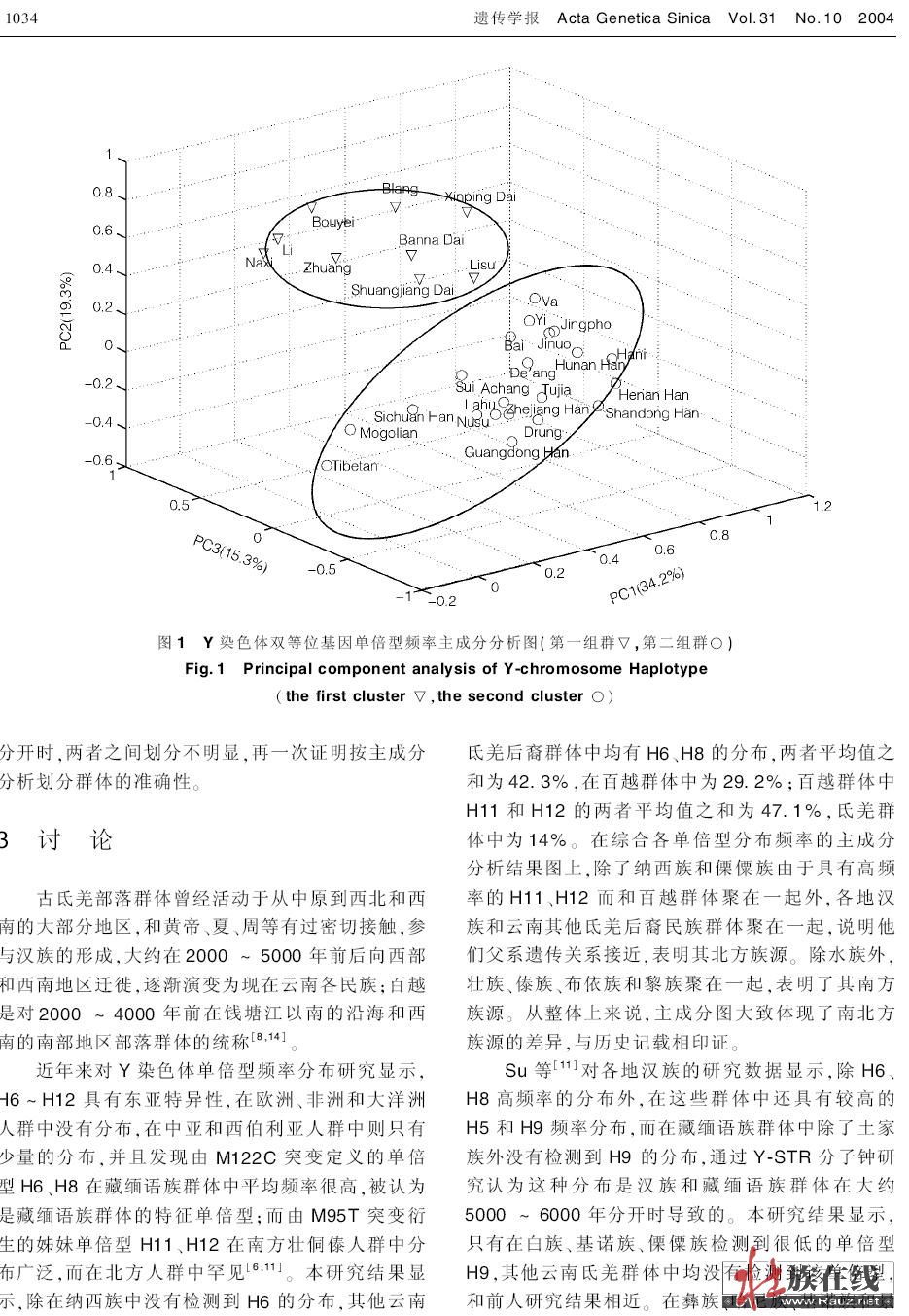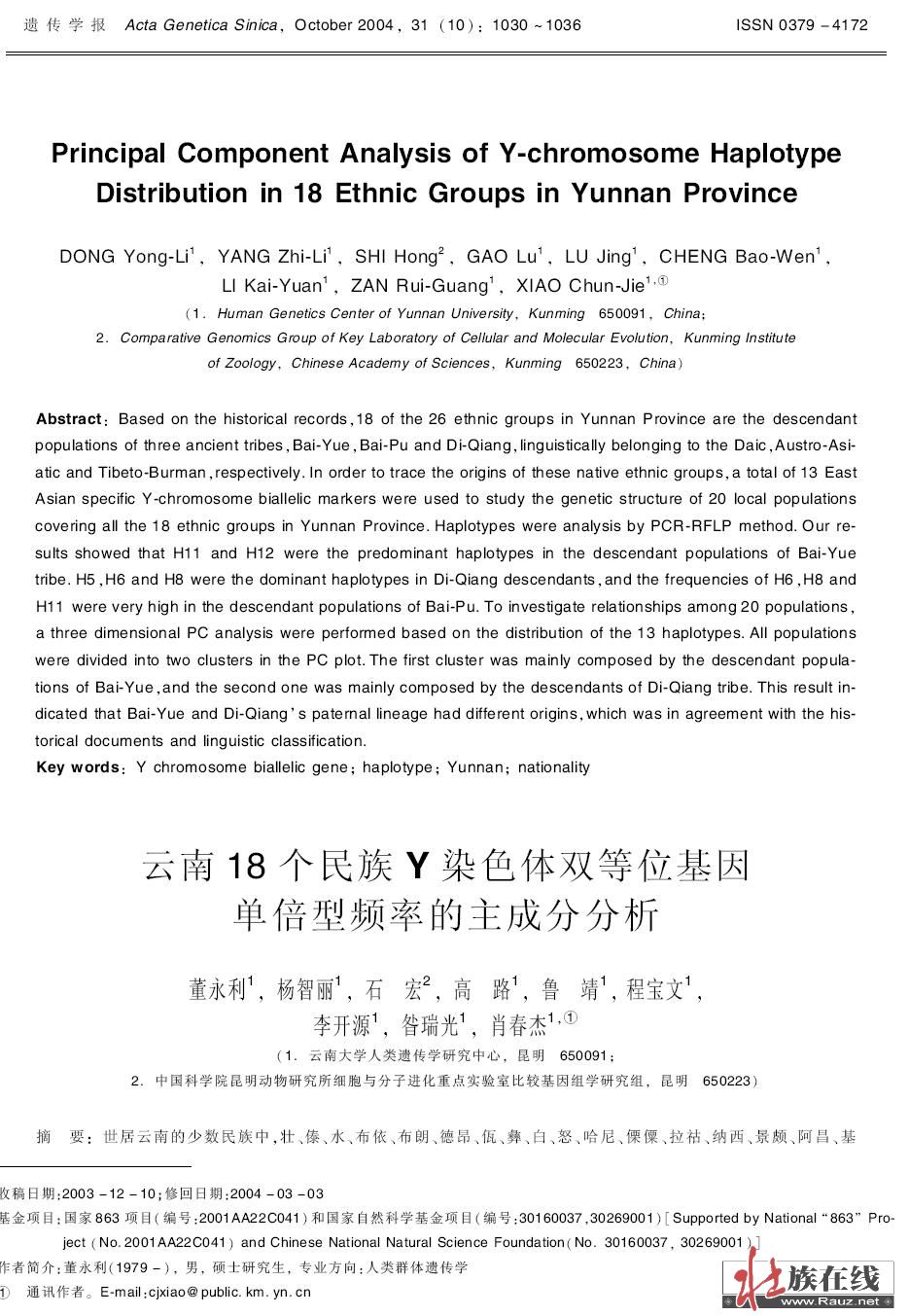 云南18个民族Y染色体双等位基因单倍型频率的主成分分析 |