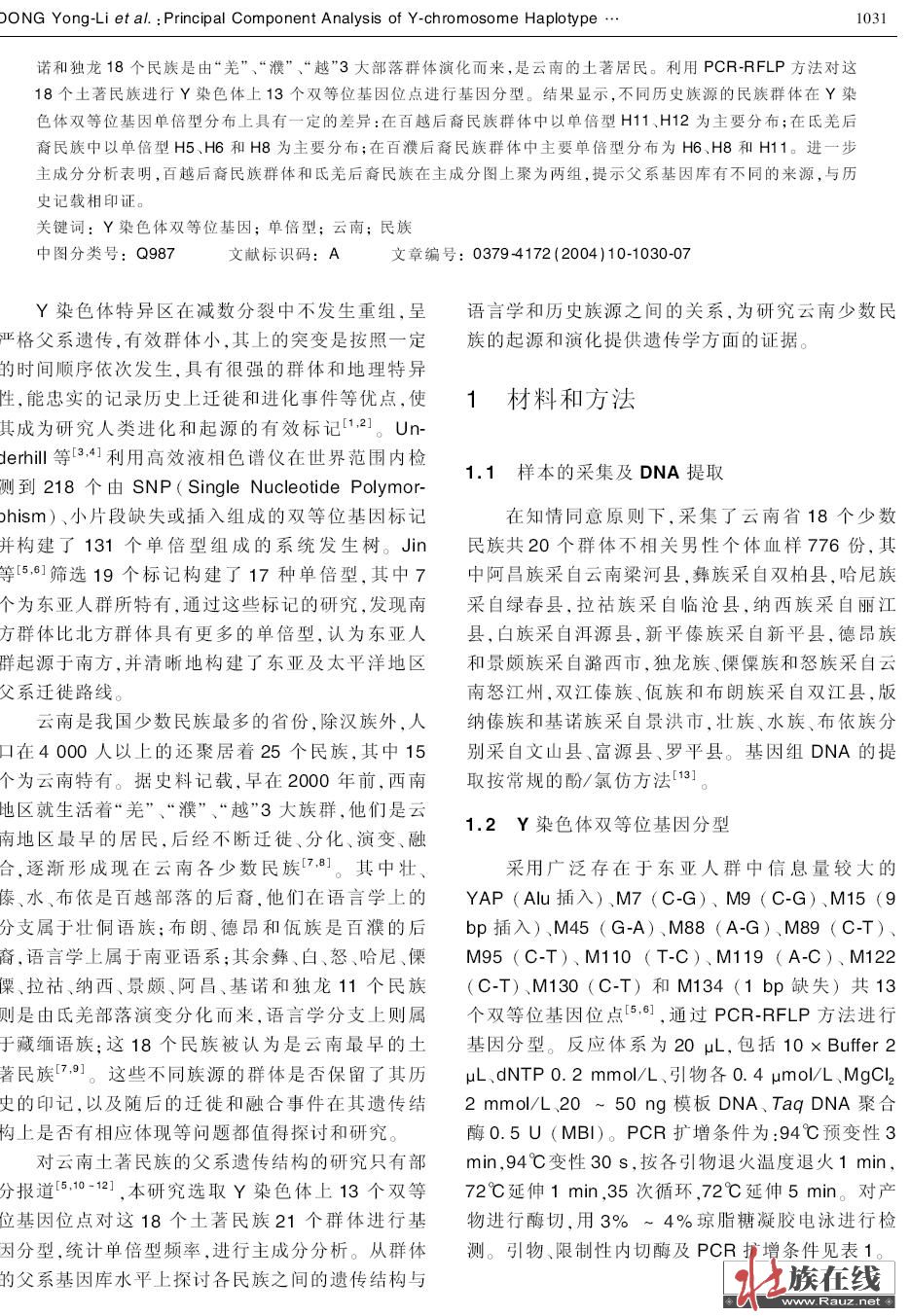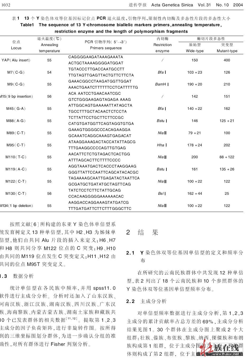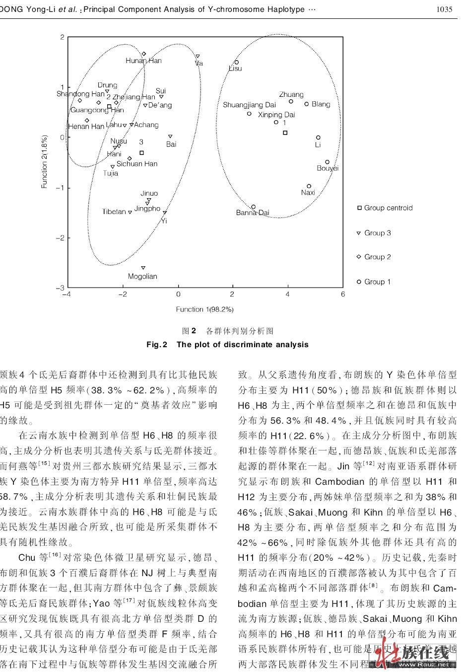 云南18个民族Y染色体双等位基因单倍型频率的主成分分析 |