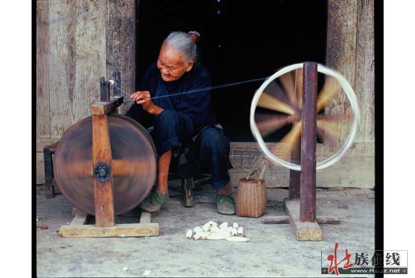 壮族棉纺工艺-纺线团  广西.隆林.界廷.那合2005.08