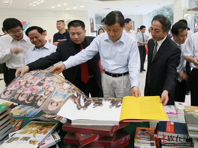 刘云山翻阅《没有围墙的民族博物馆》画册