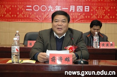 1月4日下午3时,伴着辞旧迎新的喜庆,广西非物质文化遗产研究中心揭牌仪式在我校科技楼报告厅隆重举行。自治区政协副主席蒋济雄,原自治区副主席奉恒高,我校校长何龙群等领导出席了揭牌仪式。