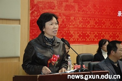 自治区教育厅科研处副处长陆燕回顾了2006年以来我区非物质文化遗产的建设情况。她说,广西民族大学具有悠久的历史,在民族文化和民族艺术相关领域有较强的实力,在国际交流与合作上有得天独厚的条件,文化厅与广西民族大学合作共建广西非物质文化遗产研究中心将对广西的非物质文化遗产的保护和传承工作起积极作用。