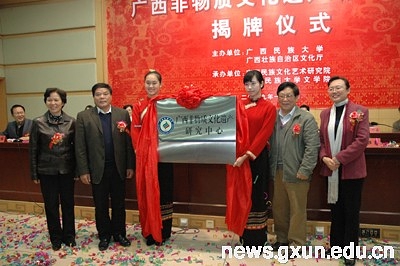 1月4日,广西民族大学和广西文化厅在广西民族大学联合举行“广西非物质文化遗产研究中心”揭牌仪式。