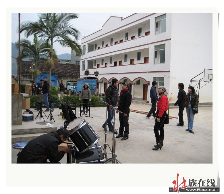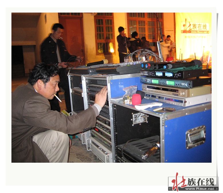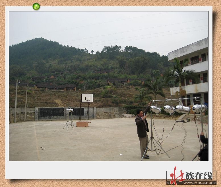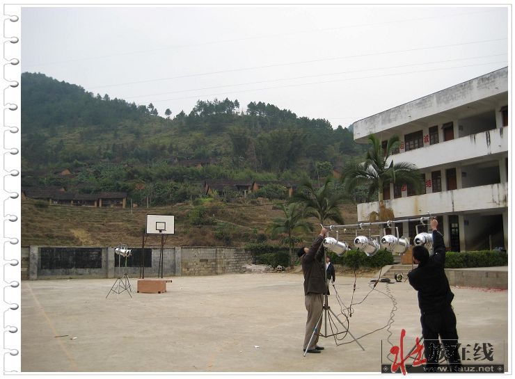 (4)现场装灯光(远处是纯干栏壮寨那雷屯老寨)