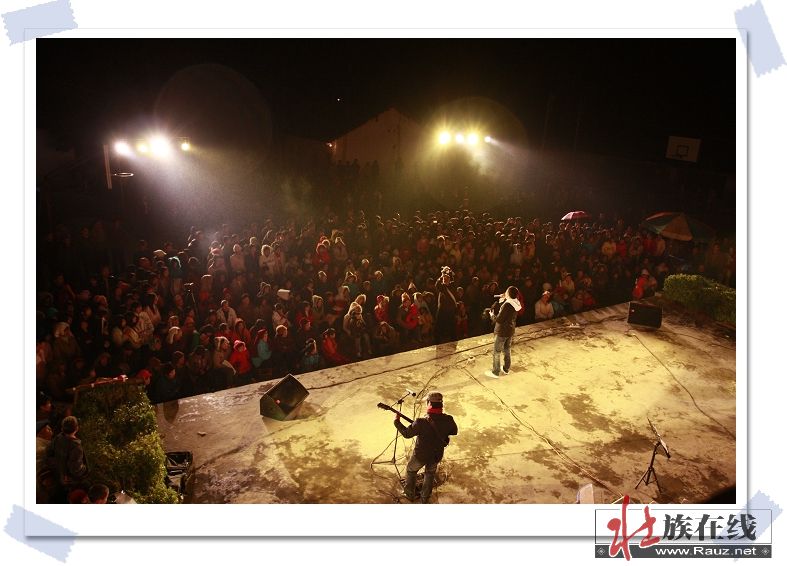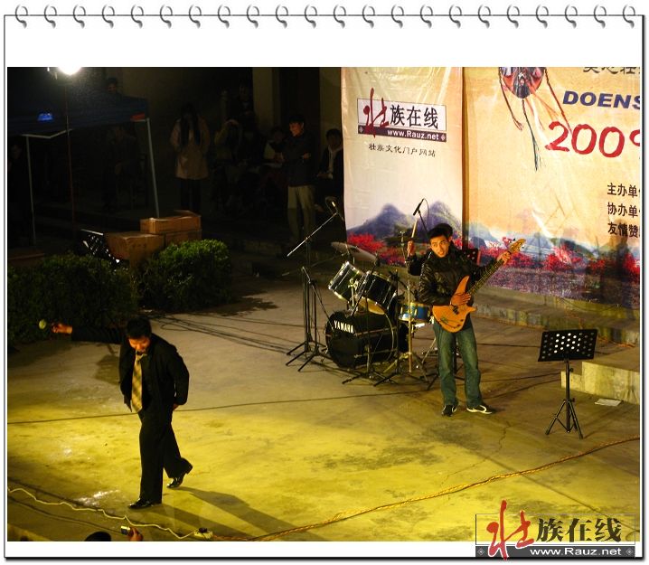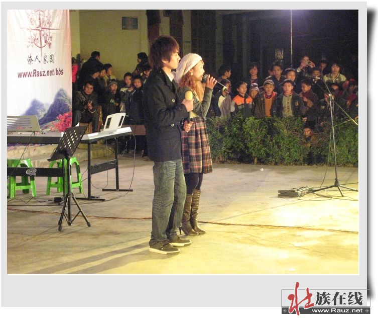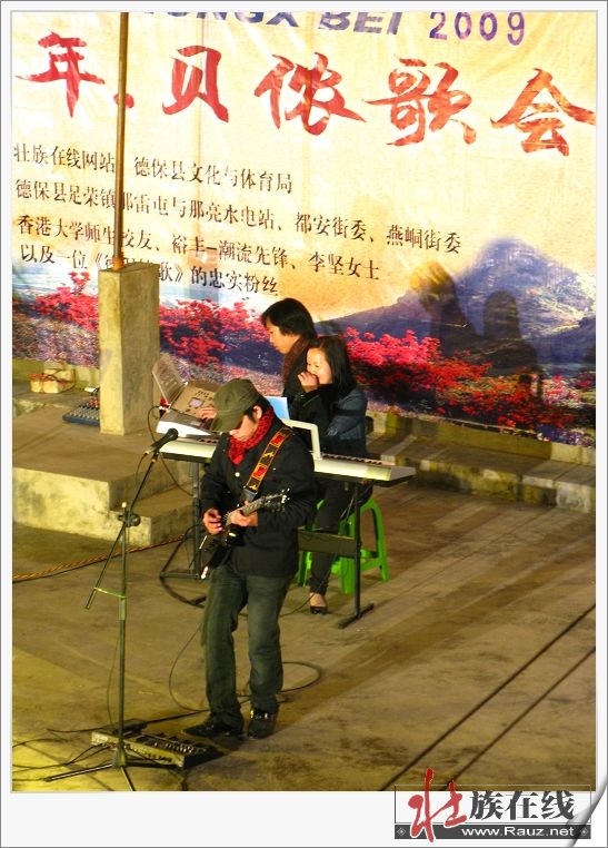 2009年1月28日晚8点半,第一场巡演于德保县足荣镇那亮村那雷屯的那亮中心小学操场举行,受到了村民的热烈欢迎。那亮村老老少少观众的热烈欢呼声,从主持人入场宣布节目开始,一直到演出结束,都在持续不断。从主持人到歌手,全场都用壮语德保话来说与唱,非常地贴近老百姓的口味与需求。作为歌会的组织者,这次那雷演出使得我们真正体会到了农村地区从小孩到老人家对壮语新歌的热爱和欢迎,那雷屯虽然只是一个行政村的村部所在地,在我们短短的几天海报宣传之下,能有这么多观众涌到现场并在中场就开始的毛毛细雨当中一直坚持到最后还意犹未尽的样子,可见壮语新歌的魅力对于德保村民来说不同一般。