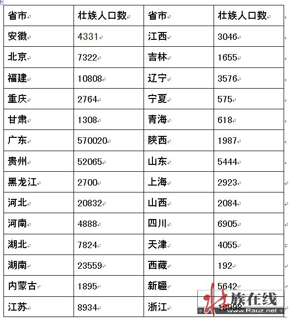 居住在广西、云南以外的壮族人口数 |
