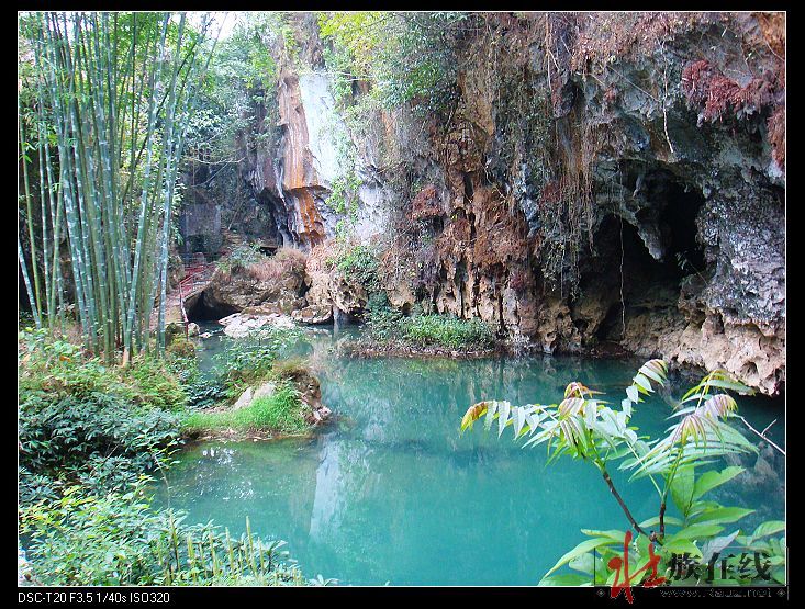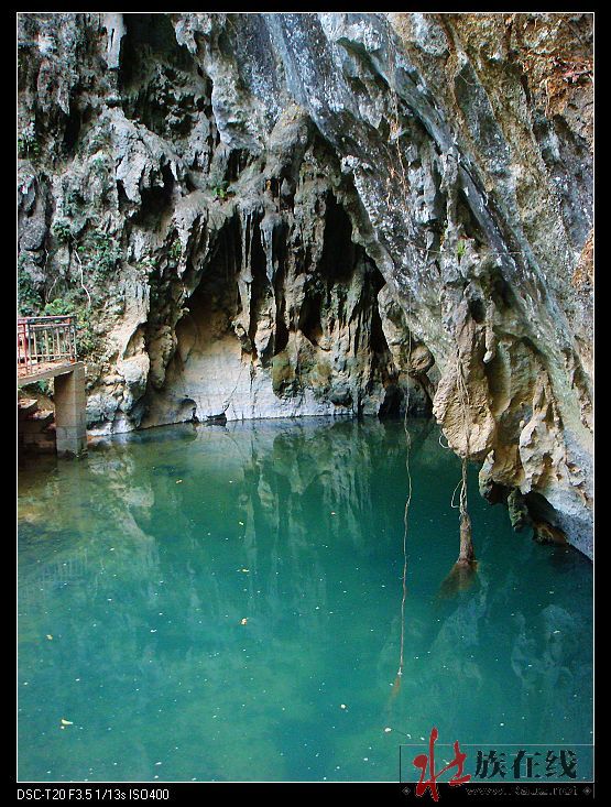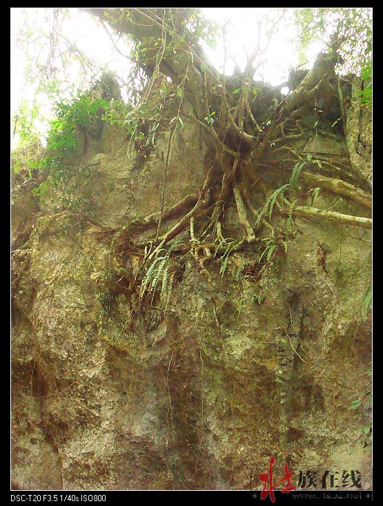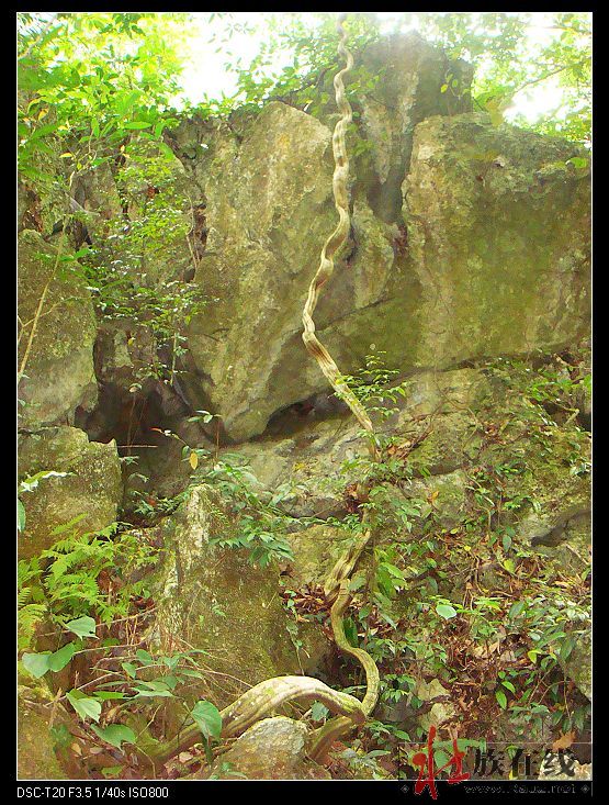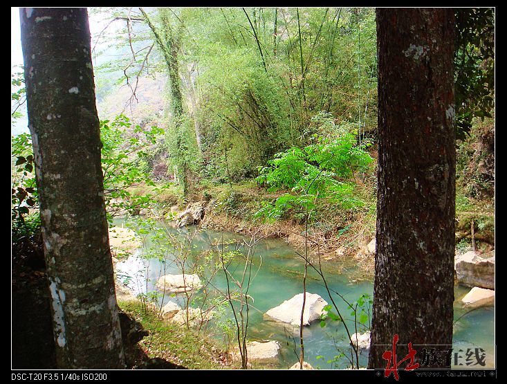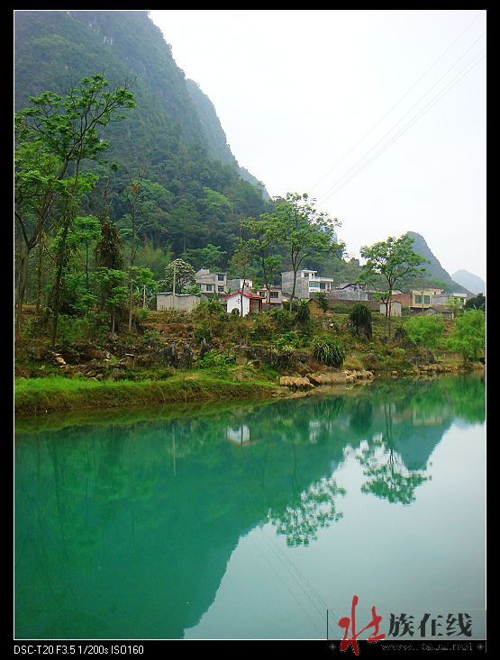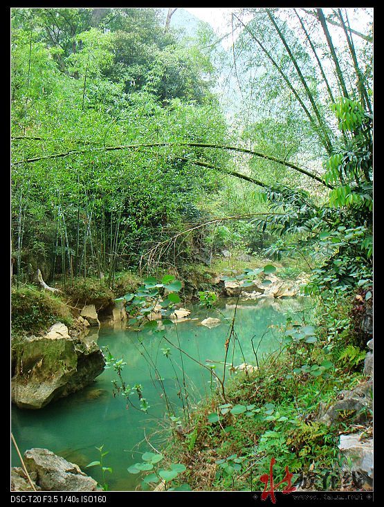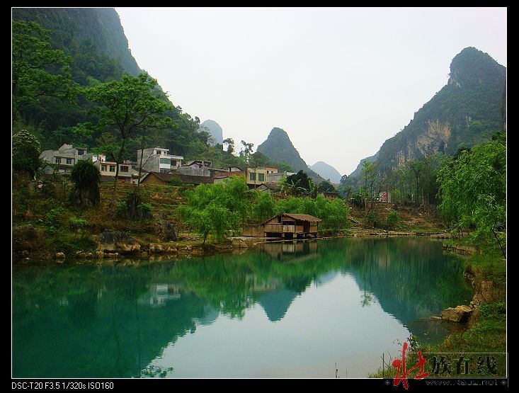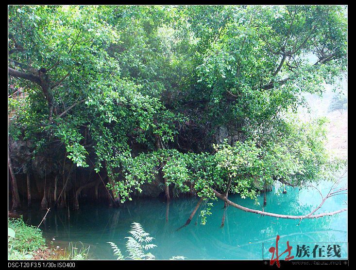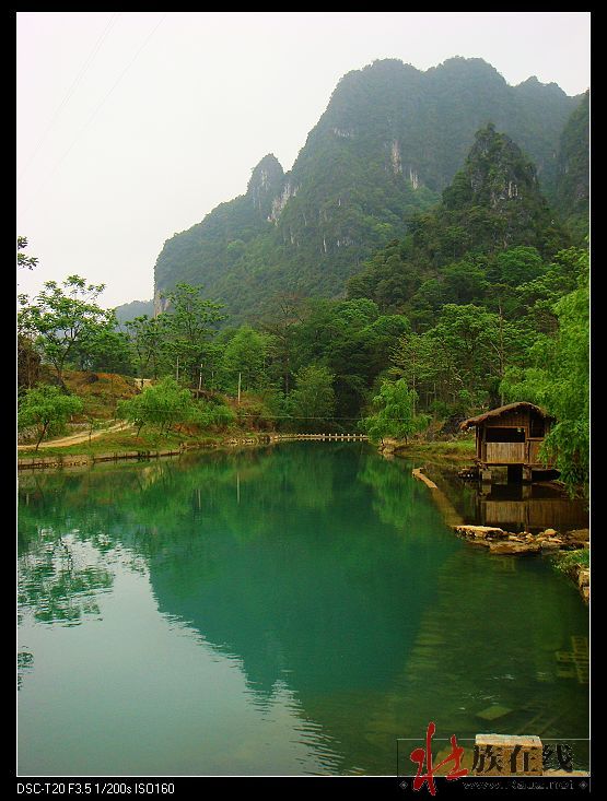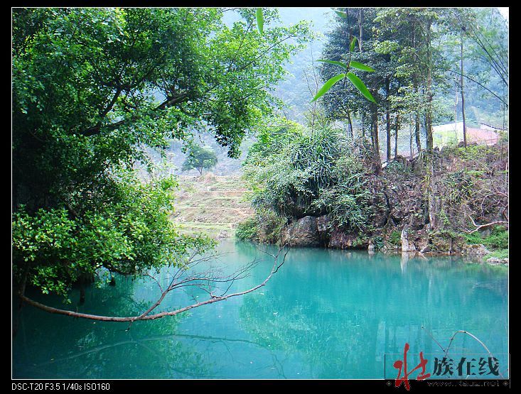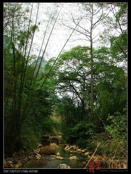 最令我和潘教授激动的是下游的原生态景致区,那里是我们在下游水坝散步后偶然发现的,距离村子这么近的河两边,居然还保留着茂密的树丛河岸,竹林、木棉树、古藤、怪石等,形成十分雅致的自然景观,特别是河岸还有两柱高耸的铁木(mayxhinj),已经是非常珍贵的树种了。河岸两边有简单的土路和石路,这种路正是我们理想当中的原生态旅游景区的样式,还有一个小坝桥,游人可以经过它到达河对岸,虽然现在还是枯水期,水位尚低,但四周的绿意盎然还是令这个河段充满着生机和春色,令人流连忘返。我们在那里游逛了很久才回到服务区吃饭,等差不多离开龙达的时候,许先生才问我们,刚才在那段河岸有没有遇到那条大蛇,我们才知道那里原来还有蛇,而且是一条十几二十公分直径粗、几米长的过山风,这种剧毒而脾气暴烈,随时给人致命危险的蛇,而且是这么的粗长,说出来挺吓人的,但许先生说那条蛇很温顺,他平时去那里散步,遇上它的话,他还会和他打招呼,然后和它byebye告别,总之不要过份靠近它就不会有危险,有点匪夷所思。想起来还有点后怕,因为潘教授在铁木旁的乱石堆上碰到一棵古藤,还在那里逗留了许久,并留影留念了,那蛇大概也是在那里盘踞的吧。有点怀疑那里虽然距离村子近却保持着这么原生态的景观和植物,是不是和那里有大蛇出没有关,德保壮人对大蛇一般都有敬畏之意,认为那不是普通的动物,而是ziox(汉字近音“聚”),多指神蛇或神龙,一般来说那种长着大树又靠近水源、并有乱石堆的地域,都是“ziox”盘踞之地,那种大树也通常叫做mayxziox(汉字近音“梅聚”),不能随意砍伐,否则遭殃,而那种地方普通人也不会靠近,特别不能在那种地方撒尿,否则据说生殖器会肿烂之类。