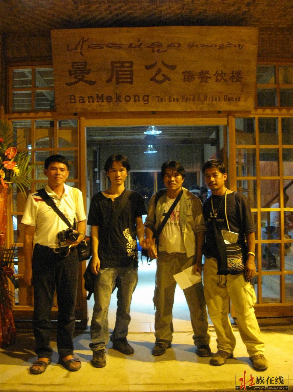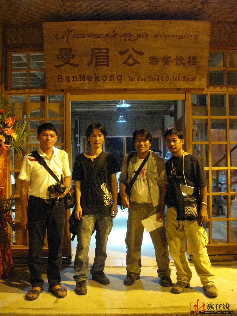 泰国朋友礼仪很讲究,我呢差点就用壮话里的"gu meng"来跟他们说了。之前我没有跟他们说话,在客人就要散去的时候,其中一位正和傣人(艾jzoom)聊天,我就凑了过去,我发现其实他们在讲到某个字的时候还是用了多种读法,我估计是不是完全都一样,但基本他们能交流,因为这位朋友是来自清迈,所以和傣人(艾jzoom)之间交流比较顺畅,在说艾jzoom他也是从缅甸清迈过来的,来这里两年多了(我听他们说song bee gua liao)....他们一直在说,我差些就没有搭上话了,于是我想找个机会跟他说些什么,我顺便问了一句“khun yoo chieng mai chai mai?"哈哈搭上了,我还说了几句正式泰语,但他呢以为我是傣人,所以一直用清迈的话跟我说,我是我是kon jong(壮)他吃了一惊,他说他知道kon jzong很古老了。意思是我们的人比较古代的感觉吧,或者是分离很久的意思。他也知道kon jzong的来历,靠近老挝越南。说起来他也很兴奋,他说300多年了,我说不只三百多年啊,800多年都有了,他说他那边也有知道jzong 的存在。并要求我们合照。。。嘿我也来照两个吧要不然我们的人怎么知道呢。后来我跟他们留了彼此email,他们知道我们族人有壮语歌曲听(傣语为:pian)就是光碟的意思。他问西双版纳mee hkai mai?我说没有,我说在网上和广西才有。也许他们看过网上的一些东西吧。。。我想此时如果我有一张pa sa jzong 的光蝶的话一定赠送给他。我还跟他说了农智高,他说他知道...