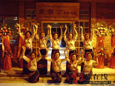 “曼眉公”为盛太乐公司新的傣味餐厅,位于景洪城内新大桥旁--湄公河旁。今天(bee09/4月9)为开张的日子。我也带着空肚来祝贺一番
