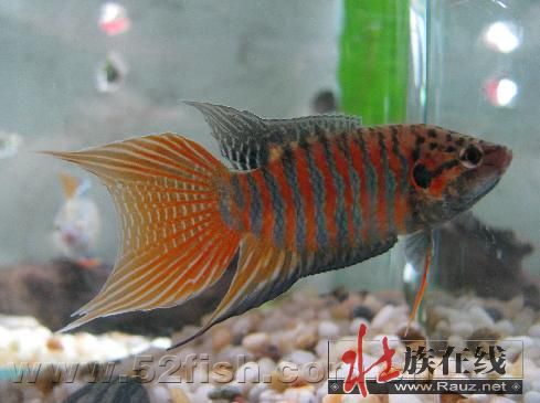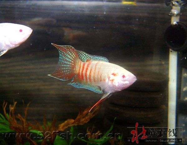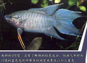 红蓝叉尾斗鱼又叫普通叉尾斗鱼(普叉),又名中国斗鱼、天堂鱼、菩萨鱼、花手巾,属鲈形目(Perciformes)攀鲈亚目(Anabantoidei)。原产于中国南部。体呈长圆形,稍侧扁,尾鳍深分叉,体长可达8厘米。体色呈红、蓝、绿三色,体侧有11条蓝色和红色横向条纹,头部有黑色条纹,鳃盖后边缘有一绿色斑块,眼眶为金黄色。叉尾斗鱼颜色协调、艳丽,深受热带鱼爱好者的喜爱。这种鱼十分易于饲养。适宜水温为20℃~25℃。它也是最耐寒的热带鱼之~,可以忍受4℃的低温,在14℃以上的水体中就可以很好地生长。对水质不苛求,喜食孑孓,和泰国斗鱼一样长有褶鳃,可直接从空气中吸取氧气。一般雄鱼体色艳丽些,延长的鳍条较长。雌跫产卵极多,多者可达1 000粒左右。叉尾斗鱼好斗,不仅互斗,还厮咬其他品种的热带鱼,适宜于单独饲养。普通叉尾斗鱼在各地都有不同的表现型,一个小小的台湾地区,都可以把普叉分出7个型,可见整个华南地区的普叉,其分类应该是更加繁多复杂的,但国内并没有详细和权威的分类,原因是国内研究叉尾斗鱼的专业人士太少。