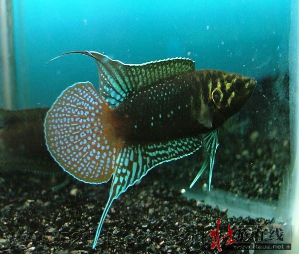 喜欢感受壮家叉尾斗战斗中所闪现的金属光泽。蓝绿色的纹和背鳍,深蓝的臀鳍,桔红色的尾巴闪着蓝光,再加上金黄色的胸鳍,可以算是典型的壮家叉色彩布局了。