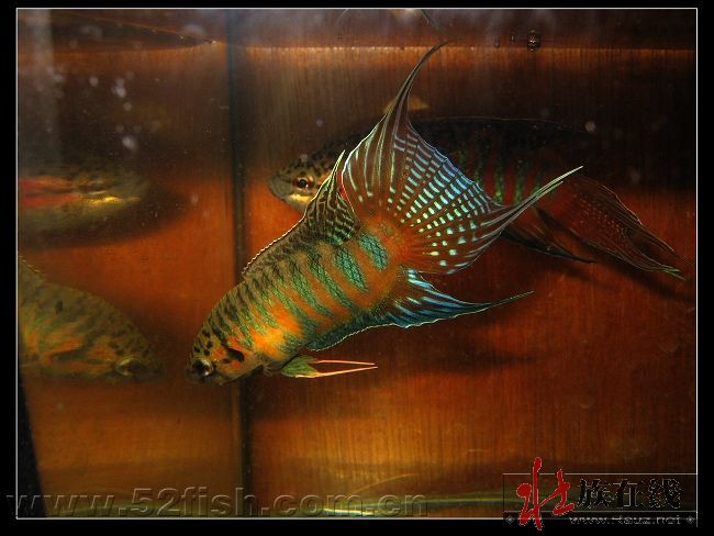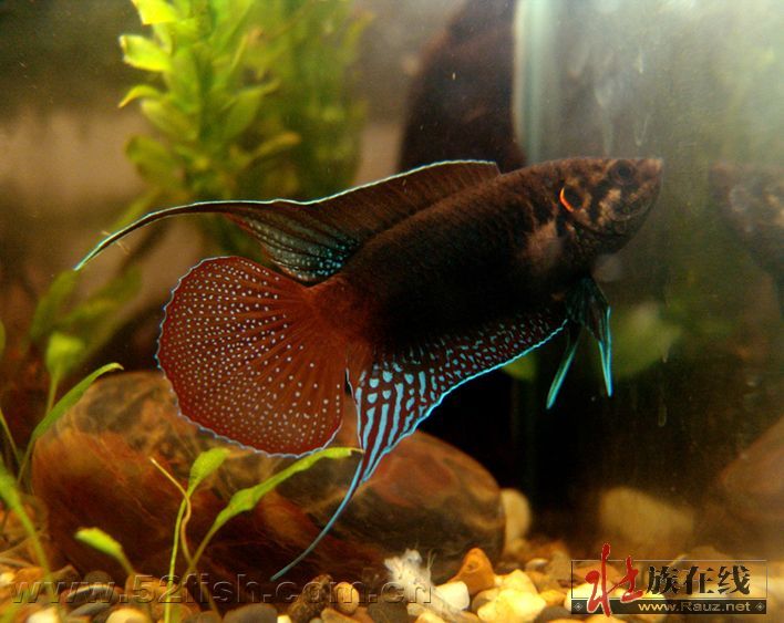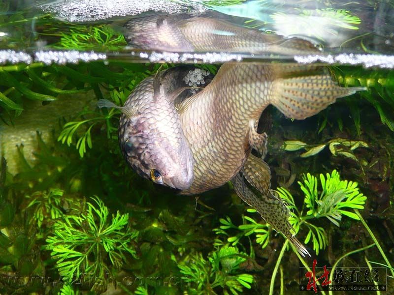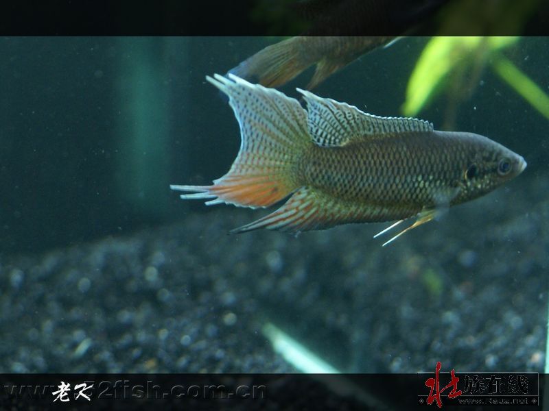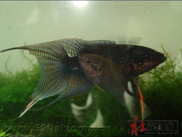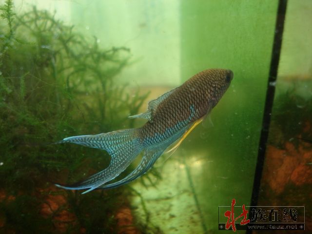 经过一段时间繁殖照顾小鱼,已经变得憔悴了许多。转移到榕缸里,金刚砂的效果使得它显得更加暗淡,此时发现其尾形已经变得很修长,而离野采回来仅有一个月时间,长了好几公分,不可思议……