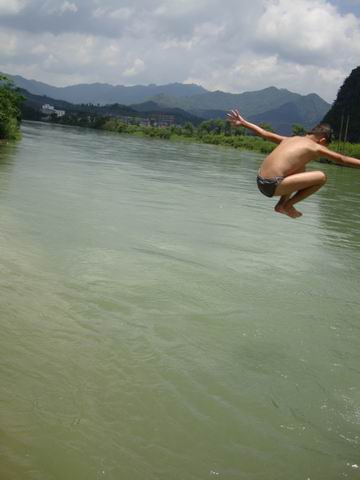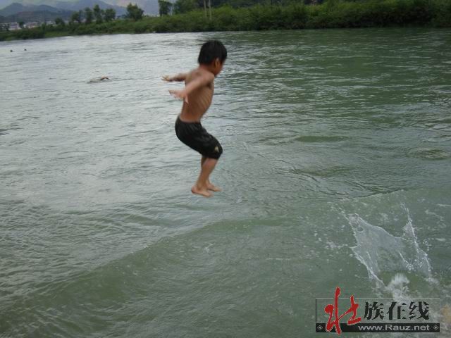 孩子们游得很久了,看看他们有的打斗,有的嘴巴已经很紫了,我赶紧收起相机,叫他们赶紧去穿衣服免得感冒了。他们都不理会我,拼命的喊“不冷,不冷,我们还没游够呢。”真是羡慕他们,有这么美丽的河可以尽情的游玩。由于时间关系我们也得赶路了,回望着他们,真的有点不想离开这么美好的画面……