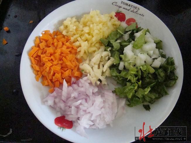 东西很少吧。。。呵呵,把原料都切得丁或丝,这样切方便煮烂,汤才会浓浓的好喝。。。