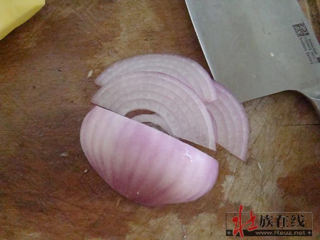 看看我切洋葱的刀功,很艺术吧。。。漂亮的刀,漂亮的蔬菜。。。煮出来的一定是漂亮的汤。。