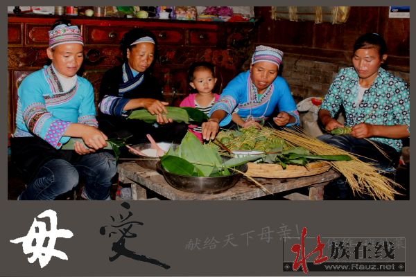 六月的黑耳,田畴叠翠,稻花飘香,处处一幅幅田园风光的景象。每逢农历六月的第一个亥日,居住在黑耳的壮族同胞迎来了一年一度的“母亲节”,母亲节那天,家家户户包粽子,以表达壮家人对母亲的崇敬和对生命的崇拜。黑耳壮家人包的粽子成柱状,形似马脚,所以俗称“马脚杆”,母亲节即将来临的前一天,家家户户采摘来一捆捆竹叶、芦苇叶、草果叶等天然叶子,再准备精选上乘、颗粒饱满、洁白圆润的黑耳老品种糯米和上等的火腿干巴,将火腿干巴切成一根根手指大的条状,拌上磨成粉末八角、草果等天然香料,一切都准备就绪,晚饭过后,一家子男女老少围着旺旺的火塘,包起了粽子。黑耳壮家人包粽子很特别,在预先铺好的叶子上,盛上一勺糯米,在糯米间加上一根火腿干巴,然后卷起叶子,用稻草或藤草裹扎成柱状,其次,包粽子用的叶子也非常讲究,可以根据人们不同的口味和爱好,选用不同的叶子,竹子叶包的粽子淡淡清香,草果叶包的粽子香味扑鼻,芦苇叶包的粽子饭粒分明、清香可口。等到粽子包好,差不多到了深夜,用水泡上四五个小时,等到第二天天明便可以煮粽子,煮上两个小时,壮家人在“母亲节”的节日里就可以及时吃上粽子。黑耳人过“母亲节”,正值稻谷吐穗,秋硕即将来临,农忙已逝,作为稻作民族的壮家人自然不会忘记耕牛,所以在为自己包粽子的同时也为耕牛包粽子,让耕牛跟主人一起享受着节日的待遇,表达壮家人对耕牛的尊重。据当地老人讲,以前在“母亲节”这一天,当地还有祭水田和招魂的习俗,家家户户到田间地头杀鸡“招魂”,祈望招来人丁兴旺、五谷丰登、禽畜满圈。时至今日,很多习俗都已经流逝,但千百年来,黑耳人过“母亲节”的习俗从来没有间断,代代相传,究竟何时兴起,没人说得清楚,更没有人考证过,但与1910年在美国维州宣布在该州设立母亲节相比,至少要早得多,至于对包粽子习俗的缘由和来历,也是众说纷纭,主要流传两种,一病虫害说,很久以前,一对壮家夫妇辛辛苦苦盘的几亩田,正值稻谷抽穗之时,突然被蝗虫袭击,夫妇两正一筹莫展之时,经过睡梦中仙人指点,将肉包在粽子里吃掉,寓意把蝗虫吃掉,夫妇两照此一做,病虫害就没了,稻谷焕发生机,此后代代相传;二招魂说,出于对生命的崇拜,“母亲节”这一天,黑耳壮家人将肉包在粽子里,寓意着生命的孕育、繁衍和起源。