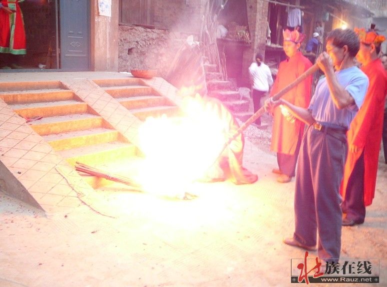 (2)斋lwn。属家屋仪式。家里有si ma do(zai si)、生病、猪狗不安、老人去世时有钱的会做三个星期(haet zai)。要扫家。