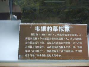 景泰年间(1450—1456年),古田壮族贫苦农民韦朝威、覃万贤举起了起义的大旗,广大劳动人民纷纷参加,拥戴韦朝威、覃万贤为首领,形成了一支坚强的武装队伍。他们很快攻下县城,占领全县,赶走官吏,抗击官军,地主豪绅纷纷跑到桂林、柳州及邻近各县,逃避农民军对他们的惩罚。为了扑灭古田农民起义的烈火,封建妄图用欺骗的手法,招抚农民军,特派了一名典史入城抚谕。可是,起义农民不仅没有接受官府的招抚,反而把派去的典史烹死。为了扩大起义根据地,义军还频繁地向邻近各县出击,严重地威胁着桂林城。