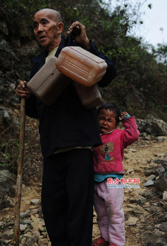 国家崛起却生态环境恶化,使挑水的路越来越长,目前已达到十多公里!公务员起薪7000元,养政府的开支增速大大高于GDP增速,却无钱修路!一切权力在政府,公民不能自已组织修路,修路集资款已交五年,承诺的路仍然不存在!青壮年长年在城市打工为城市市民创造产值、为政府创造税收和为官员与国家创造面子,却不能将父老带到城市居住,只能让父老留在穷山无水的鬼地方当挑水愚公!