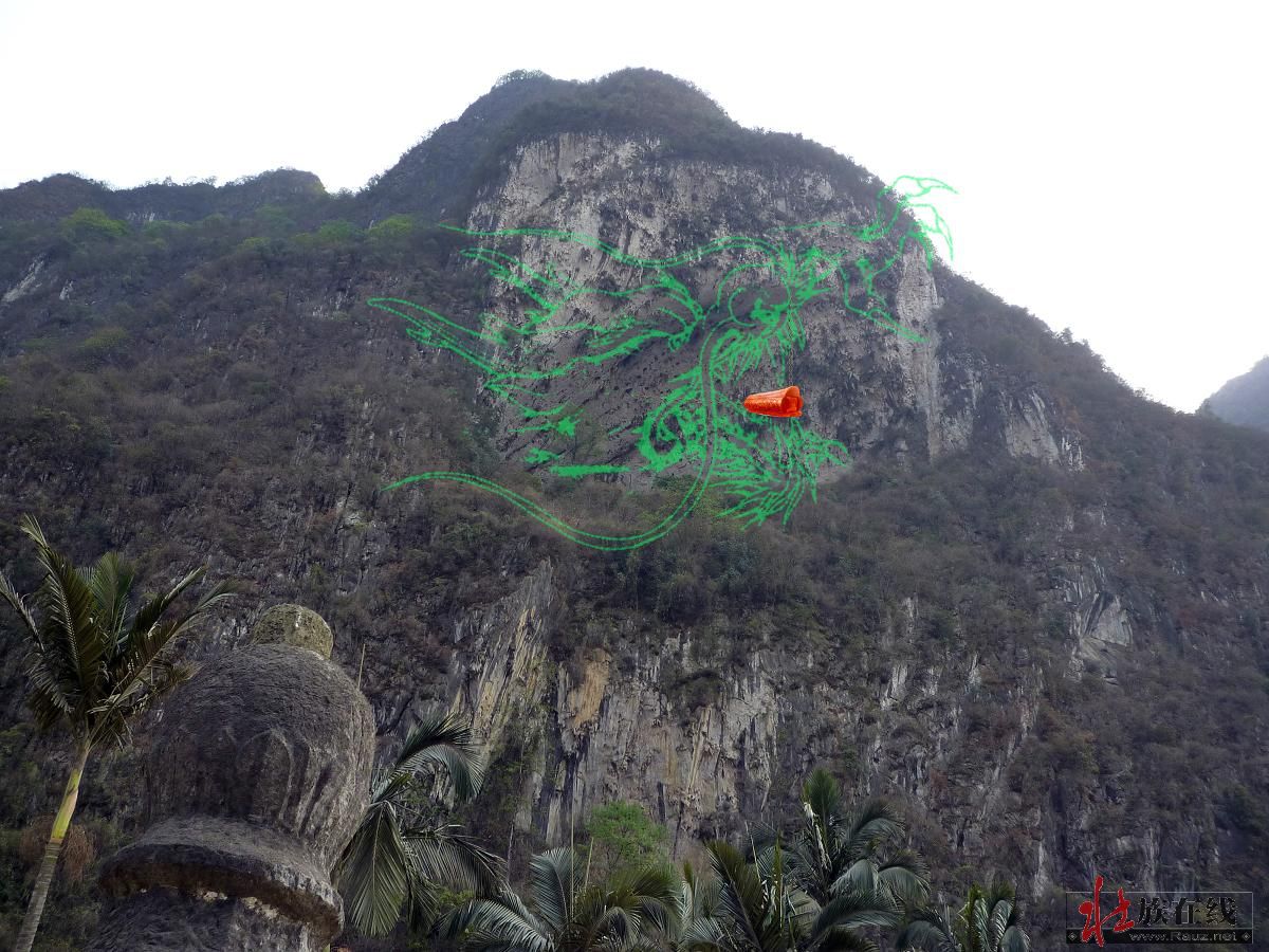一日,老太爷生大病寿终,风水老先生念在多日款待之恩和在地主的再三肯救下,便说:“泗城附近有个迎晖山,它是一个土龙脉,从山背后看,他有个大山洞朝天大开,它其实是只啸天龙,敢对天吼叫的一只土龙,但是他现在是死的,没有舌头,你把老太爷的棺材做成龙舌头的样子,用铁链挂在龙嘴巴中,而且在啸天龙洞下那条河做饮水台,台阶要故意做高,让路人喝水都要跪下来才能喝,他就活了,从此你家便可以做上封疆大官或是土皇帝!”说完,风水老先生立即眼睛聋掉、嘴巴哑了,地主便按风水老先生的话做了,做了龙舌悬棺安放在龙嘴,修建了饮水台,让路人跪下喝水,而且也没有食言,把风水老先生供在家。日后,地主家逐年发绩,生意一路顺风,富甲一方,儿孙也都要么做了官员、要么也发了大财,岑家逐渐在广西显赫了起来。后来日子久了,对风水老先生也就不那么理睬了,待遇越来越差,到最后都懒得给他吃饭,就关在黑屋子里给点剩饭,风水老先生觉得自己已经是个废人也都忍下了,但后来听说地主家在当地开始仗着权势开始胡做非为,就很生气,决定要毁掉土龙脉,有一天趁人不备便摸索到河边,把自己的事情写成一封信:“土龙脉有了舌头,但是还没有眼睛,所以还打不过天龙,如果地主家善待到我死,我的眼睛就送给土龙,到那时,土龙就可以打赢天龙,他家就可以做皇帝,但是现在他家发了一点绩就开始胡做非为而且开始虐待我,以后做了皇帝还得了吗,破土龙脉的方法是把这封信烧了把灰和箭一起煮,对准悬馆铁链射,便可以把铁链射断,等于把他的舌头砍断,把引水台毁掉,在对面修做个饮水台,让人喝水时屁股朝着他,土龙脉就死了”,风水老先生把信放在鱼肚子中放生,后来一个年轻人在河中摸鱼,便得到了信,决心帮老先生破土龙脉,他把这封信烧了把灰和箭一起煮,对准悬馆铁链射,便把铁链射断,把引水台毁掉,在对面修做个饮水台,让人喝水时屁股朝着他,然后晚上时候救走了风水老先生。后来,地主家无论准备修复土龙脉,都无济于事,因为土龙没有眼睛,和引水台被毁等于被栓住了脖子,这样的龙就永远打不过天龙了,传说后来岑家出了许多封疆大吏,都只能象着只土龙一样被困在山中。。。。。。罗崴予搜集整理