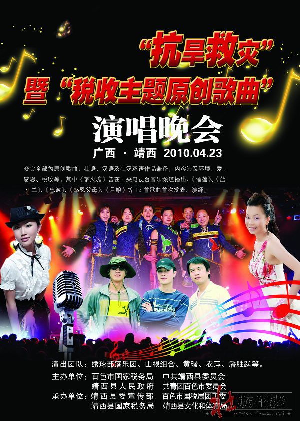 “绣球故乡 税曲飞扬”税收与环境主题原创歌曲演唱暨抗旱救灾晚会将在广西靖西举办