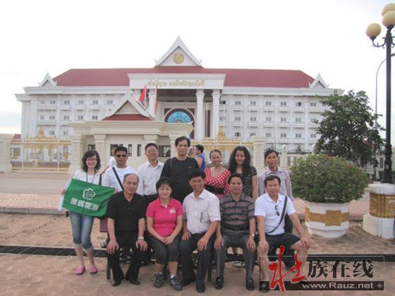广西南宁市江南区教育代表团赴老挝进行教育教学考察和结对友好签约活动。图为他们到达万象市后在老挝总理府前留影。