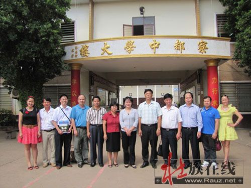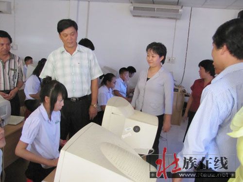 14日下午,南宁市江南区教育代表团还到万象市寮都公学考察。万象市寮都公学第十八届董事会副董事长林俊雄、陈俊耀和万象市寮都公学副校长陶菊、陈继振等接待了代表团,召开了座谈会,详细介绍了学校的有关情况。寮都公学位于老挝首都万象市中心的农敏路,1937年由万象市中华理事会创办,至今已有73年的历史。在校学生1800多人(其中40%左右是华侨子弟,60%是老挝当地学生),教师130多人,从幼儿园到高中“一条龙”办学,实行老汉双语教学。学生毕业,均要求达到“老挝语和汉语兼通”的水平。该校校园环境优美,绿树成荫,鲜花盛开。教学设备齐全,纪律严格,教学质量高,在老挝声誉很高,在校生最多的时候曾达到5000多人。据介绍,老挝的国家主席、副总理等国家领导人的孩子也在该校上学。代表团漫步校园,观看校容校貌,还进到电脑教室观看学生练习汉字输入等等。所到之处,师生们笑脸相迎。因为是华侨学校,所以,校内的标语、牌匾等都使用汉字书写,异国遇“知音”,代表团的同志感到很亲切。代表团给寮都公学赠送一面广西铜鼓,还给部分教职员工赠送绣球、壮锦袋等礼品,并与学校领导班子的同志在学校大门合影留念。
