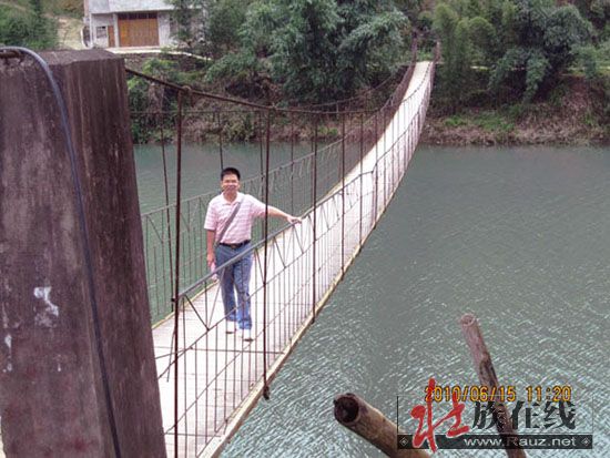 麻石水电站形成的库区把瑶寨通往山外的路拦断,过渡只有这座摇摇晃晃的铁索桥