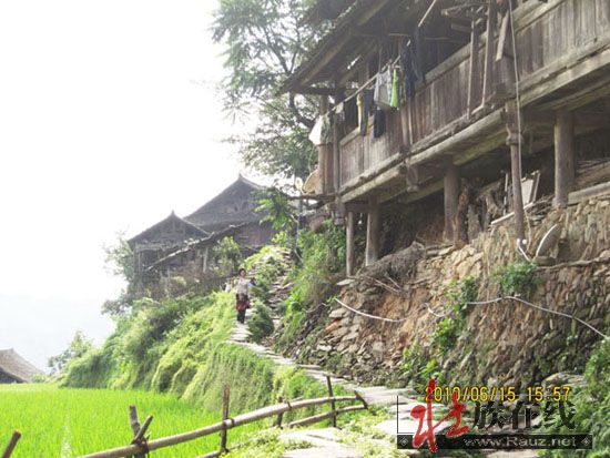 9 红瑶吊脚楼大多建在陡峭的山坡上。据说此楼已建有50年之久,可见瑶家建筑技艺之高超10 红瑶女子世代用自制的淘米水洗发,再用清泉洗净,这般天然养发护发的效果比高档洗发精更好