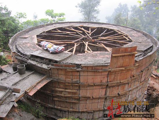 30 正在修建的巨大防火水池,使全部为木质建筑的瑶寨防火有了保障
