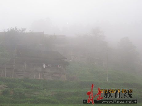 红瑶寨子浓雾弥漫的早晨红瑶寨里可谓“地无三尺平”,瞧,全寨千人共用的芦笙坪,竟然只有这么丁点大。逢年过节,寨人蜂拥而聚吹芦笙,这巴掌大的地方能容下多少人?