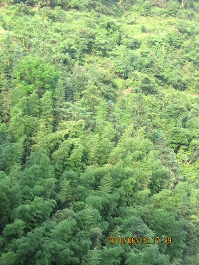 45 深山里的天气转瞬就变。5月16日早上返程,刚搭上摩托车时还晴朗清爽,到半途却突降阵雨,使此行快乐之行以“落荒而逃”告终