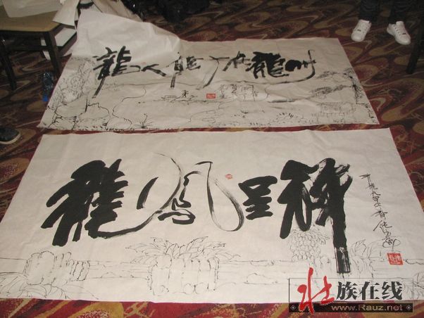 林大师创作的书画作品:龙人龙字在龙州和龙凤呈祥。