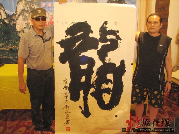 林静纯大师有绝活的,他可以书画合一,就是写了大字后还要画画,字画互相衬托又独立成画,他写字前还要求字者自己把字写好他根据求字者的笔迹和性格写字作画的。现场他和他的好朋友陽光辉一起即席为来宾挥毫,我和很多来宾都求到了字罗,确是难得一见的作品。